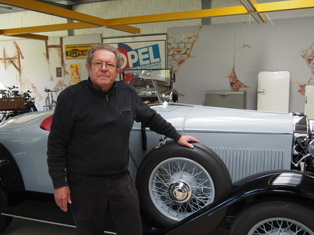 Ko sva se z Boštjanom že poslavljala od Klausa, naju je na parkirnem prostoru svojega servisa še enkrat pocukal za rokav, zamahnil z roko kot najstnik, ki ve za skrivnost in se je odločil, da nama jo bo pokazal. Zadaj, za servisom in avtopralnico, je bil še en prostor v katerem je bil nekoč pomemben del servisa z dvigalom. Na njem je bil dvignjen predvojni model Opla, najbrž samo za hude stranke, s poševnim zadkom nad katerim bo rezervno kolo in na vrhu še potovalna košara. Pod avtomobilom je mojster nekaj delal, bil je morda malo mlajši od avtomobila. Zmajeval je z glavo, povedal je, da je s starimi avti neznansko veliko dela, a da ga bo spravil v red. Klausu so se oči zaiskrile, staro pločevino je pobožal z roko. Seveda, ko pridemo prihodnjič v Ostheim in Klausov servis, bo lepotec dobil prostor v avtomobilskem salonu.