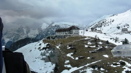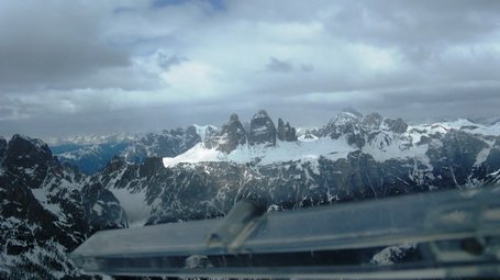 Proti zahodu slediva kompaktni sivi oblačni cesti: »Natančno tako vreme so napovedali na Wetterjetz,« pravi Boštjan, ki išče pravo pot pod oblaki, sam pa bolj ugibam, kateri vrhovi so pred nama. Znamenite Tri cine so še pred nama, rahlo severno od najine smetri. Približujeva se jim, a jih pustiva same, še globoko zakopane v sneg. Zdi se, da znamenito letovišče Misurina s svojimi zamrznjenimi jezeri, ki turistično podpira Tri cine, prav tako počiva v zimskem snu. V mislih vidim turiste pri poznem zajtrku, ob topli beli kavi razmišljajo, kam naj se odpravijo na izlet. Boštjan na glas obuja spomine na neko svoje pozno vračanje iz zahoda, ko je na tej visoki planoti, ki se poleti pogosto do zadnjega večernega sončnega žarka nastavlja soncu, ujel že globoko proti večeru še izjemno močna termična dviganja, z bazami, ki so bile višje od vseh okoliških, celo tako visoke, da se je od tam kar naravnost odpeljal do Lesc. Lepi spomini in dober podatek. Cortina zdrsi pod krili, na desni pokaže cesto, ki pelje v Toblach. Nad Corvaro najdeva solidno dviganje. Še za spoznanje odvijeva proti jugozahodu, Marmolada zdrsi mimo naju jugu. Na mnogih pobočjih občudujeva samotne smučarske vijuge, snežne poligone za alpinistične poznavalce. A nikogar ni videti, da bi si utiral pot navzgor. Razumljivo, dan ni kaj prida prijazen, sonca je komaj za vzorec. Obrisi oblakov so še zmeraj slabo poudarjeni. Le na rahlo in precej od daleč lahko slutiš, kateri oblaki so pravi.