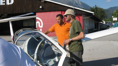 Na cilju nas je pričakal in pozdravil Tomaž Avsenek, ki je, kot drugi pilot, letel z Boštjanom na evropskem prvenstvu v Vinonu. Aeroklub Lesce je znan letalski center, še zlasti za pilote iz Avstrije in Nemčije. V zadnjih letih je kriza naredila svoje, zato je manj obiskovalcev kot nekoč. Vendarle pa imajo tam vse, kar je potrebno za vrhunsko jadranje - predvsem dva piper pawnee-ja, ki sta v stalni pripravljenosti za vleko na jadranje.