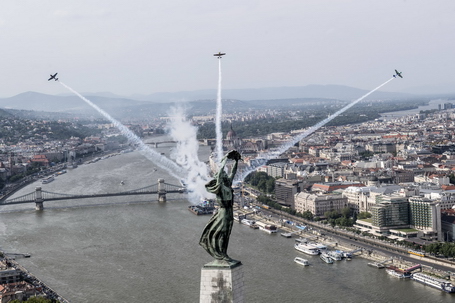 Legenda tekmovanja Red Bull Air Race Peter Besenyei vodi trenutno vodilnega Yoshihide Muroyo (Japonska) in vzhajajočo zvezdo Petra Kopfsteina (Češka) na letu skozi srce Budimpešte, vzdolž Donave in pred veličastnim Madžarskim parlamentom. »Ta neverjetna serija tekmovanj ima svoje korenine prav tukaj, v Budimpešti,« je izjavil Besenyei, ki je leta 2015 končal s tekmovanji. »Moje srce bo vedno bilo za Red Bull Air Race, in vedno uživam, ko pilotom predstavljam moje mesto iz zraka. Približno pred 8 leti sem bil v Tokiju in takrat me je Yoshi vodil nad mestom. Zdaj sem zelo zadovoljen, da mu lahko vrnem z letom nad Budimpešto.«