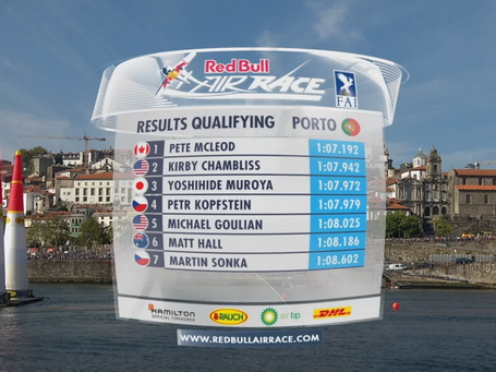 Stanje v svetovnem pokalu po štirih tekmah pa je naslednje: 1. Yoshihide Muroya (JPN) 39 točk, 2. Martin Šonka (CZE) 37 točk, 3. Pete McLeod (CAN) 26 točk, 4. Kirby Chambliss (USA) 25 točk, 5. Petr Kopfstein (CZE) 23 točk, 6. Matthias Dolderer (GER) 23 točk, 7. Juan Velarde (ESP) 15 točk, 8. Michael Goulian (USA) 14 točk, 9. Nicolas Ivanoff (FRA) 14 točk, 10. Peter Podlunšek (SLO) 12 točk, 11. Matt Hall (AUS) 11 točk, 12. Mikaël Brageot (FRA) 9 točk, 13. Cristian Bolton (CHI) 4 točke, 14. François Le Vot (FRA) 4 točke.