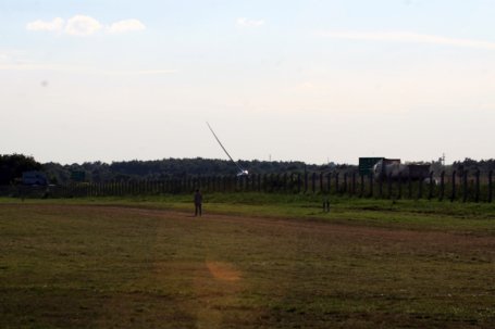 Seveda letal z oznako VW nisem pričakoval tako nizko, izdal ga je šele odsev sončnih žarkov s pokrova kabine. Na prvi fotografiji je težko najti jadralno letalo, razkrije ga šele približevanje izseka fotografije. Pilot si je želel pomagati z iskanjem talnega efekta in je zato letel prav pri tleh.